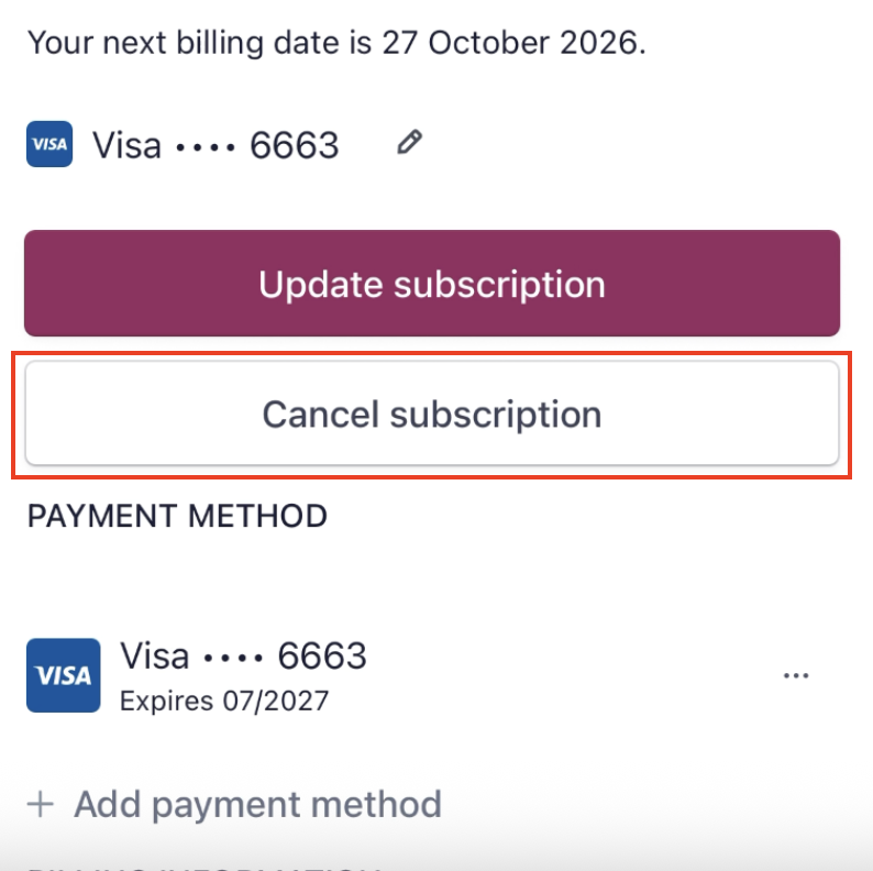If you subscribed via Apple, you need to manage your subscription with Apple directly. For more information visit Apple Support.